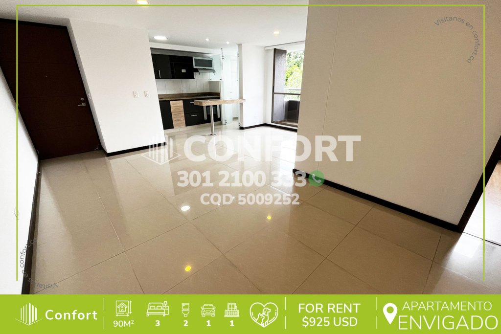 50-09-252 Inmobiliaria en Medellín arrienda apartamento disponible para la renta ubicada en el sector de la Abadía en Envigado. Cuenta con un área de 90mt distribuidos en sala comedor, cocina integral, balcón, zona de ropas, 3 habitaciones, la principal de ellas con baño privado y vestier, además de 1 baño social, parqueadero privado y cuarto útil. Se encuentra ubicado en unidad residencial con...