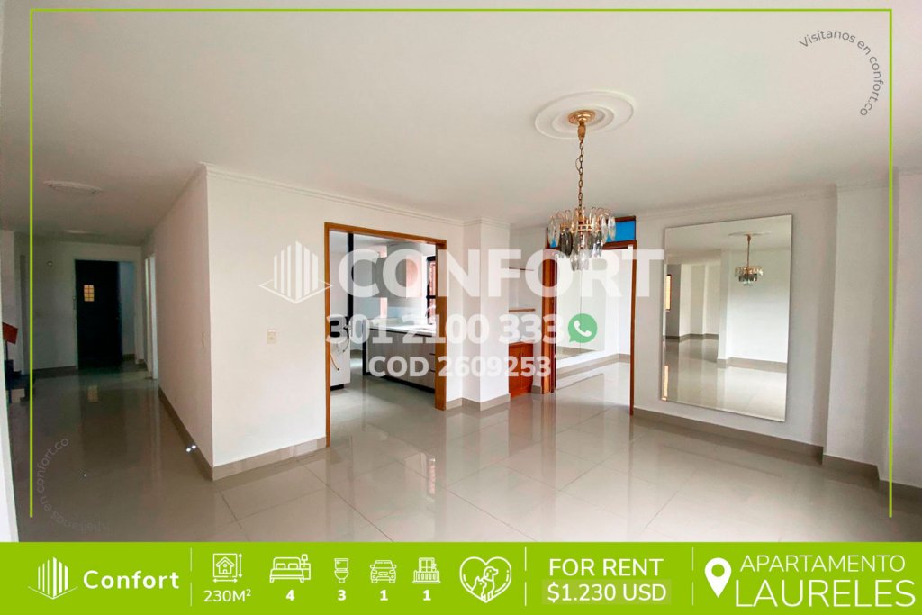 27-09-253 Inmobiliaria en Medellín arrienda apartamento ubicado en las Acacias en Laureles. Cuenta con un área de 240mt2 distribuidos en sala comedor, cocina integral, zona de ropas, zona de biblioteca, 3 habitaciones, la principal de ellas con baño privado, adicional 1 baño social, habitación de servicio, amplio patio y cuarto útil o posibilidad de una cuarta habitacion. Ubicado en edificio con...