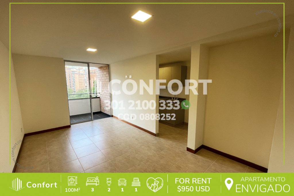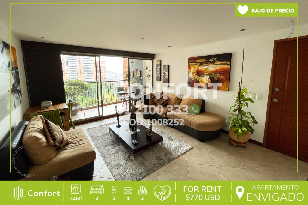 12-08-252 Inmobiliaria en Medellín arrienda apartamento ubicado en el sector de Cumbres en Envigado, cuenta con un área de 80mt2 distribuidos en sala comedor, cocina semi integral, zona de ropas, balcón social, 3 habitaciones, una de ellas con baño privado, vestier y balcón, 2 con clóset, baño social, parqueadero cubierto y cuarto útil. Ubicado en edificio con seguridad privada 24/7 y zonas comunes...
