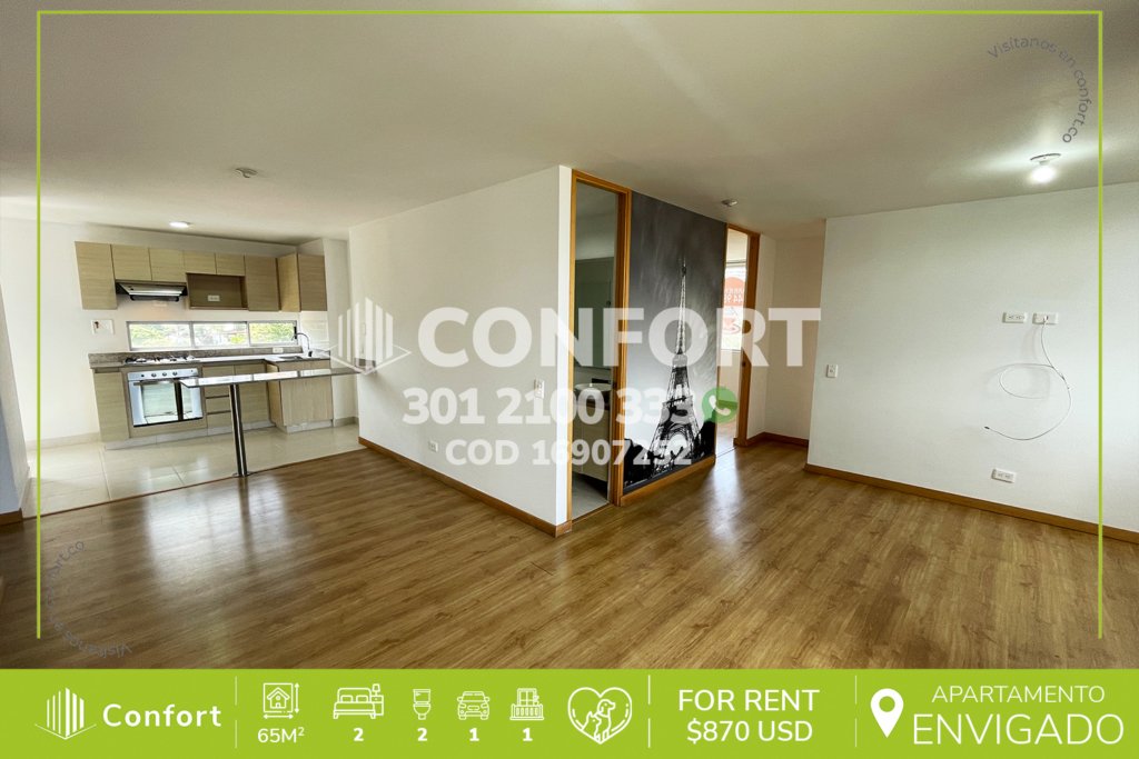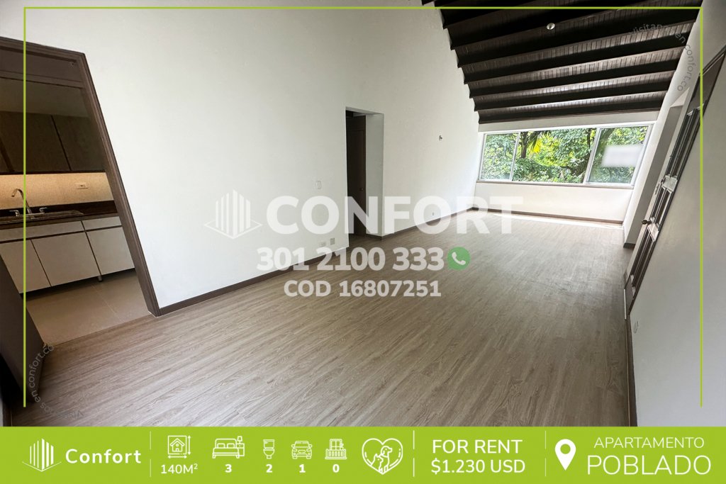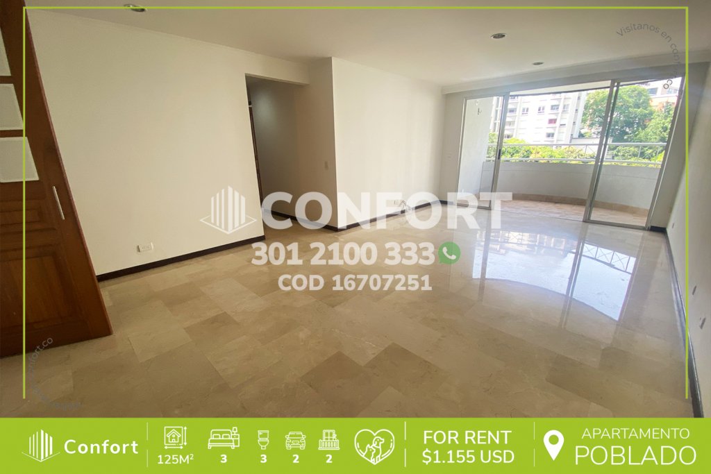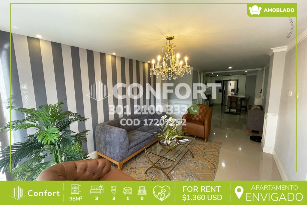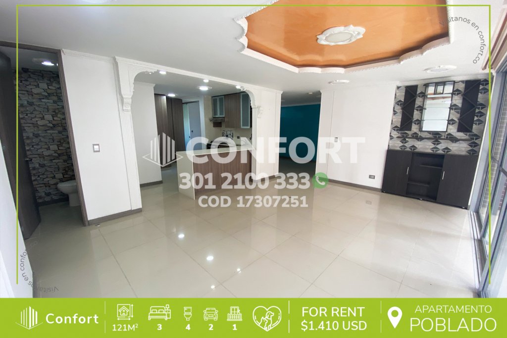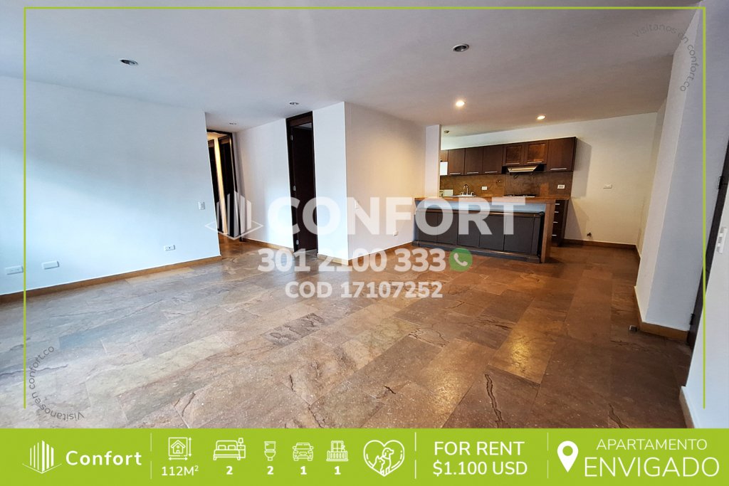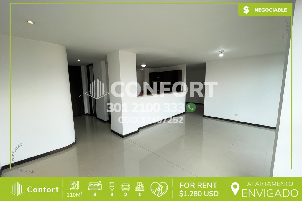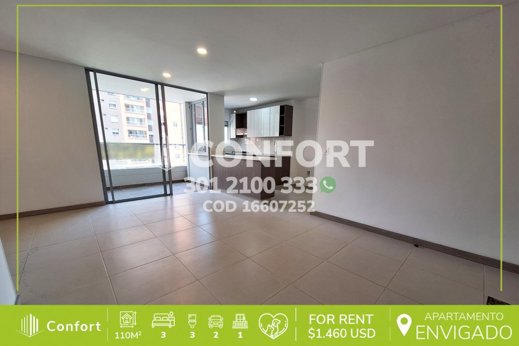 174-07-252 Inmobiliaria en Medellín arrienda apartamento ubicado en el sector de La Loma del Esmeraldal en Envigado, cuenta con un área de 110mt2 distribuidos en sala comedor, cocina integral con barra americana, balcón, zona de lavado, 3 habitaciones, la habitación principal con baño privado y vestier, 2 baños sociales, sala de estudio, 2 parqueaderos y cuarto útil. Ubicado en edificio con...