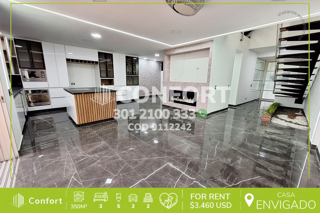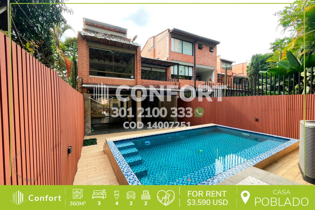 91-12-242 Inmobiliaria en Medellín arrienda casa ubicada en excelente sector de El Esmeraldal en Envigado, cuenta con un área de 350mt2 distribuidos en sala comedor espaciosa, moderna cocina integral con torre de hornos, zona de ropas independiente, 3 habitaciones de excelente tamaño cada una con su respectivo baño, área de estudio o sala de estar, en el primer piso terraza con pérgola integrada con...