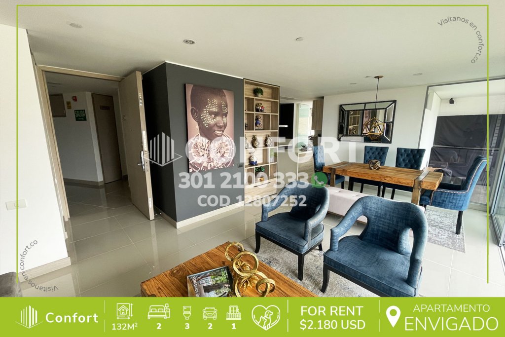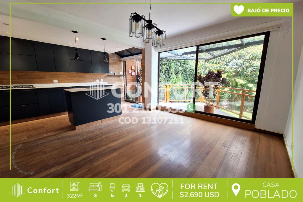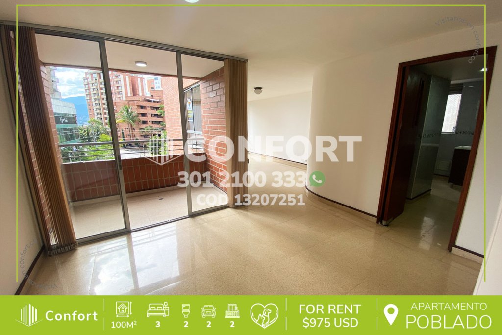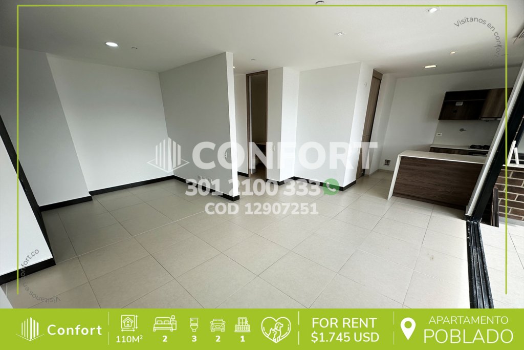 136-07-251 Inmobiliaria en Medellín arrienda apartamento ubicado en el sector de Altos del Poblado, cuenta con un área de 140mt2 distribuidos en sala comedor, cocina integral con barra americana y lavavajillas, zona de ropas, balcón con zona BBQ y vista panorámica, 3 habitaciones cada una con baño privado, una de ellas con vestier, 2 con clóset, baño social, zona de estudio, 2 parqueaderos y cuarto...