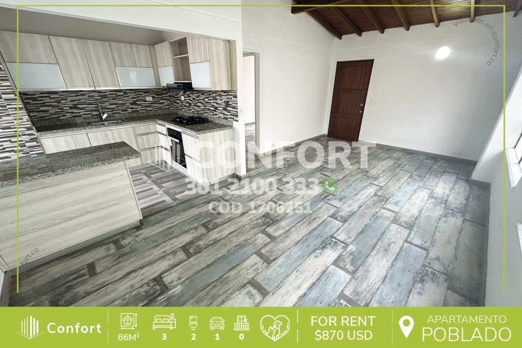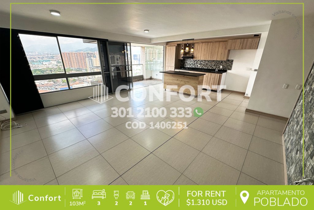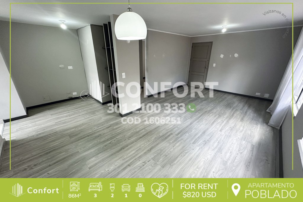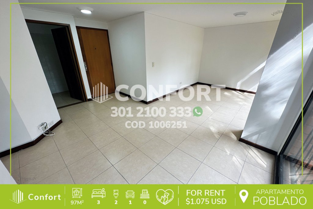 17-06-251 Inmobiliaria en Medellín arrienda apartamento ubicado en el sector de El Tesoro en El Poblado, cuenta con un área de 86mt2 distribuidos en sala comedor, cocina integral, zona de ropas, 3 habitaciones con clóset, una de ellas con baño privado, baño social y parqueadero. Ubicado en unidad con seguridad privada 24/7 y zonas comunes tales como kiosko, zona infantil y zonas verdes, a su alrededor...