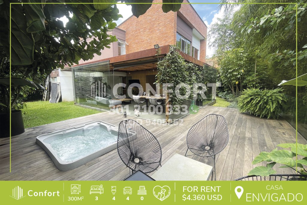 94-05-252 Inmobiliaria en Medellín arrienda hermosa casa ubicada en el sector de El Escobero en Envigado, cuenta con un lotea de 700mts, con 300mt2 construidos y distribuidos en sala comedor, cocina integral con barra americana y lavavajillas, zona de almacenamiento, zona de lavado, 3 habitaciones cada una con baño privado y vestier, habitación de servicio con baño, baño social, zona de estudio,...