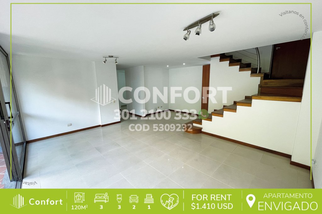 53-09-232 Inmobiliaria en Medellín arrienda apartamento dúplex ubicado en el sector de La Abadía en Envigado, cuenta con un área de 120mt2 distribuidos en sala comedor, cocina integral con acabados modernos, zona de lavado, 3 habitaciones, la principal con baño privado y vestier, 2 baños sociales, zona de estudio, 2 parqueaderos y cuarto útil. Ubicado en edificio con seguridad privada 24/7 y zonas...