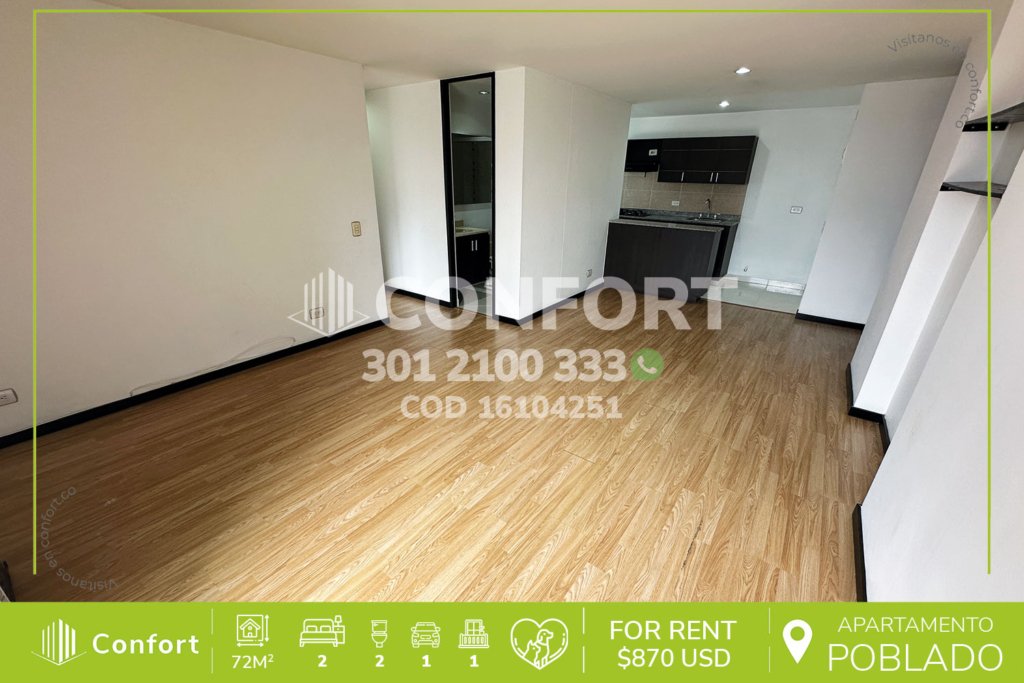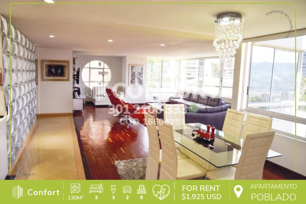166-04-251 Inmobiliaria en Medellín arrienda apartamento ubicado en cerca a El Tesoro en El Poblado, cuenta con un area de 130 m² con un diseño moderno y funcional. Cuenta con 1 amplia sala-comedor, sala de estar, cocina integral, 3 habitaciones con clóset (la principal con vestier), 2 baños privados, 1 baño social, 2 parqueaderos y 1 cuarto útil. En sus zonas comunes podrás disfrutar de amplias...