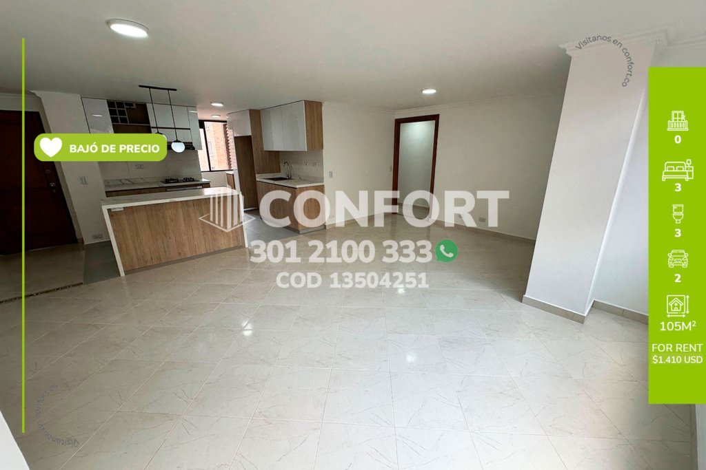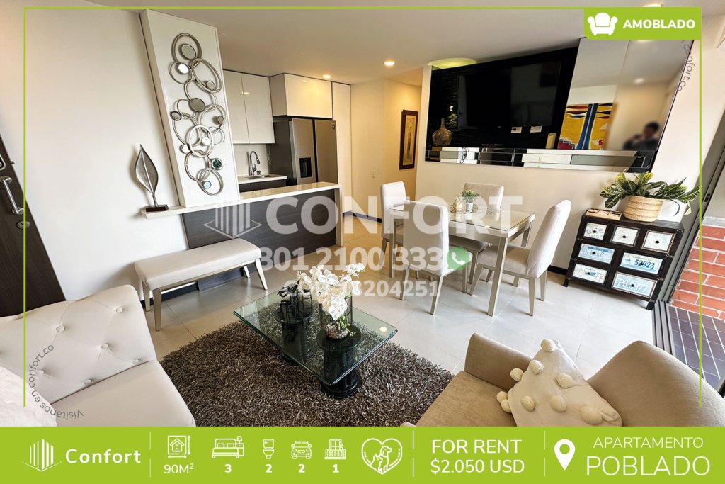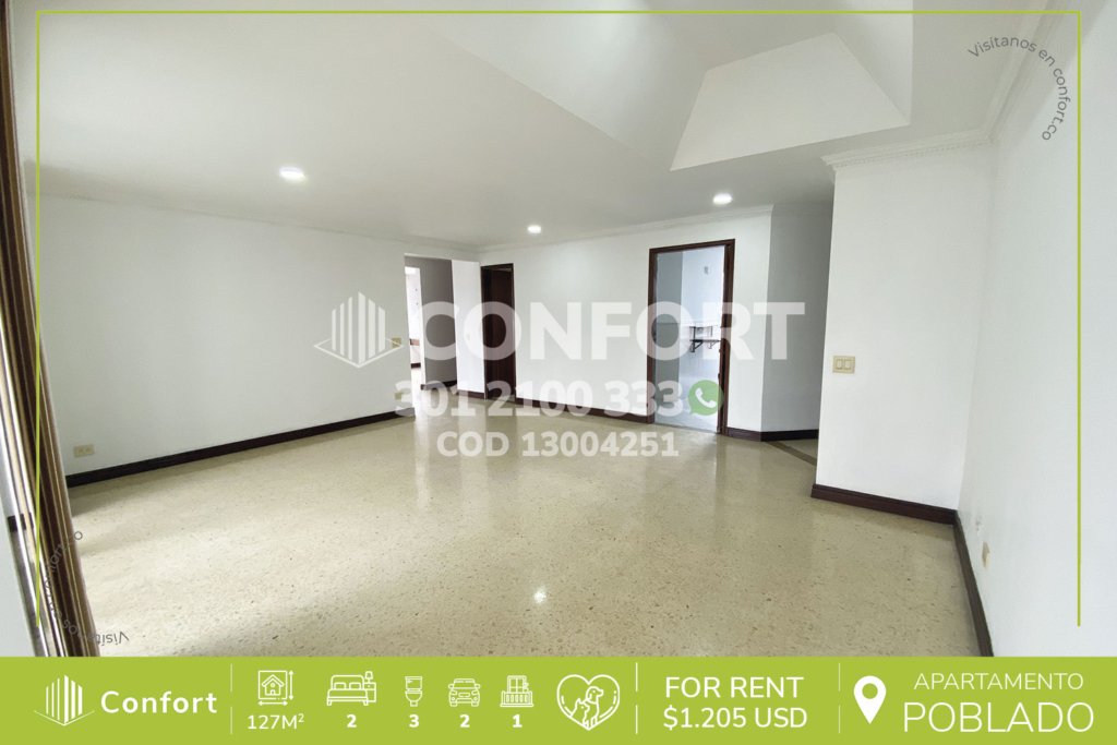 135-04-251 Inmobiliaria en Medellín arrienda apartamento remodelado ubicado en el sector de Alejandría en El Poblado, cuenta con un área de 105mt2 distribuidos en sala comedor, cocina integral, zona de ropas, 3 habitaciones con clóset, 2 de ellas con baño privado, baño social, 2 parqueaderos y cuarto útil. Ubicado en unidad con seguridad privada 24/7 y zonas comunes como piscinas para niños y...