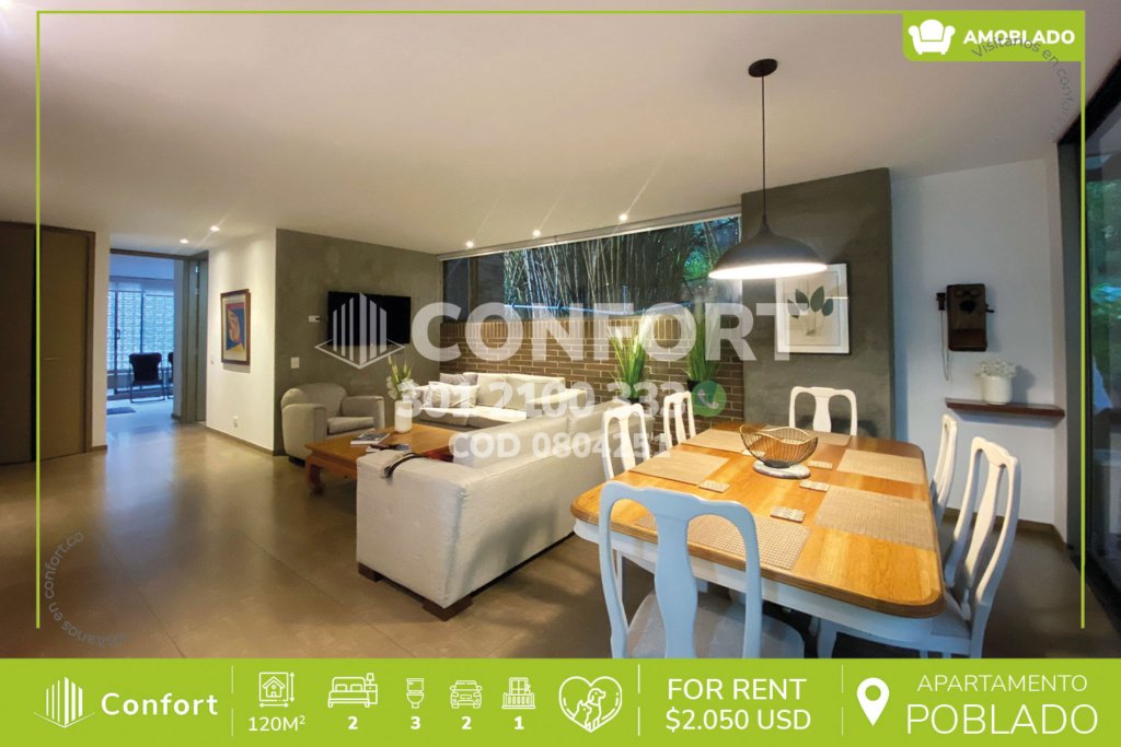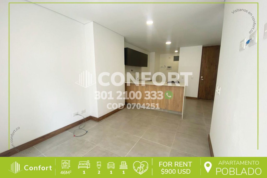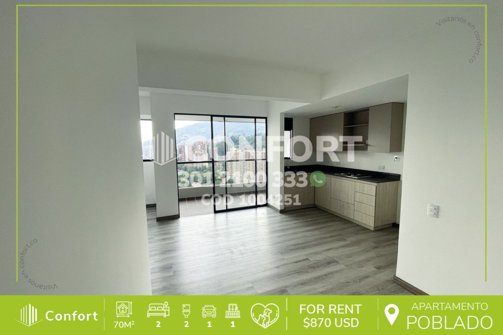 13-04-251 Inmobiliaria en Medellín arrienda apartamento ubicado en el sector de Las Palmas en El Poblado, cuenta con un área de 70mt2 distribuidos en sala comedor, cocina integral con barra americana y excelente iluminación, zona de ropas, balcón, 2 habitaciones, una de ellas con baño privado y vestier, otra con clóset, baño social, parqueadero y cuarto útil. Ubicado en edificio con seguridad...