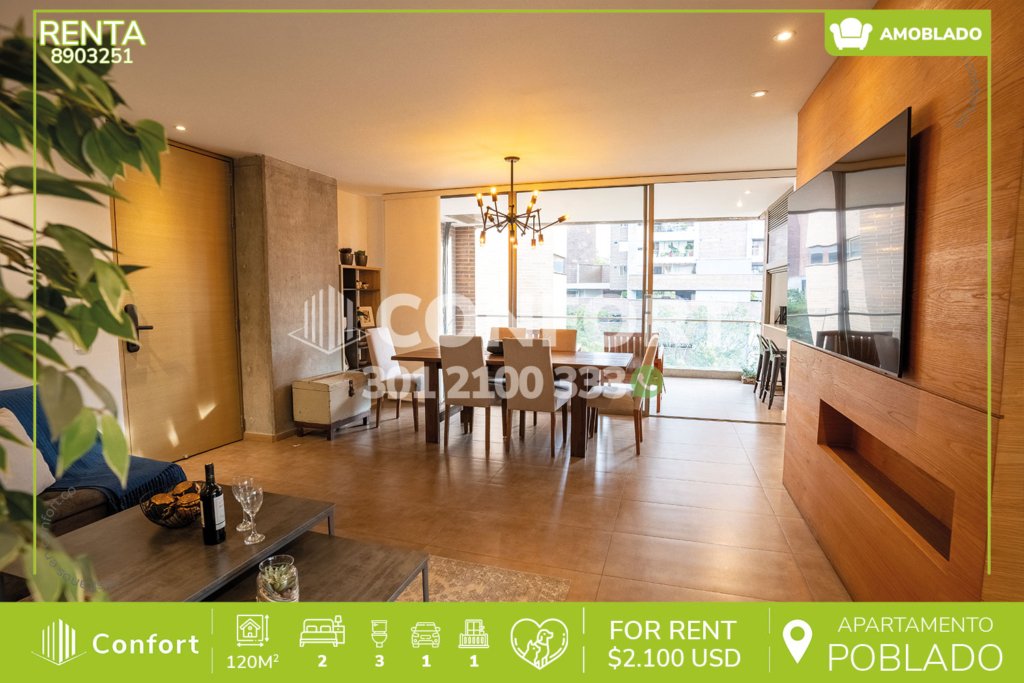 93-03-251 Inmobiliaria en Medellín arrienda apartamento ubicado en el sector de Ciudad del Rio en El Poblado, cuenta con un área de 64mts2 distribuidos en sala comedor, cocina integral con barra americana, zona de ropas, balcón, 2 habitaciones, una de ellas con vestier y baño privado, baño social, parqueadero y cuarto útil. Ubicado en unidad cerrada que cuenta con seguridad privada 24/7 y zonas...