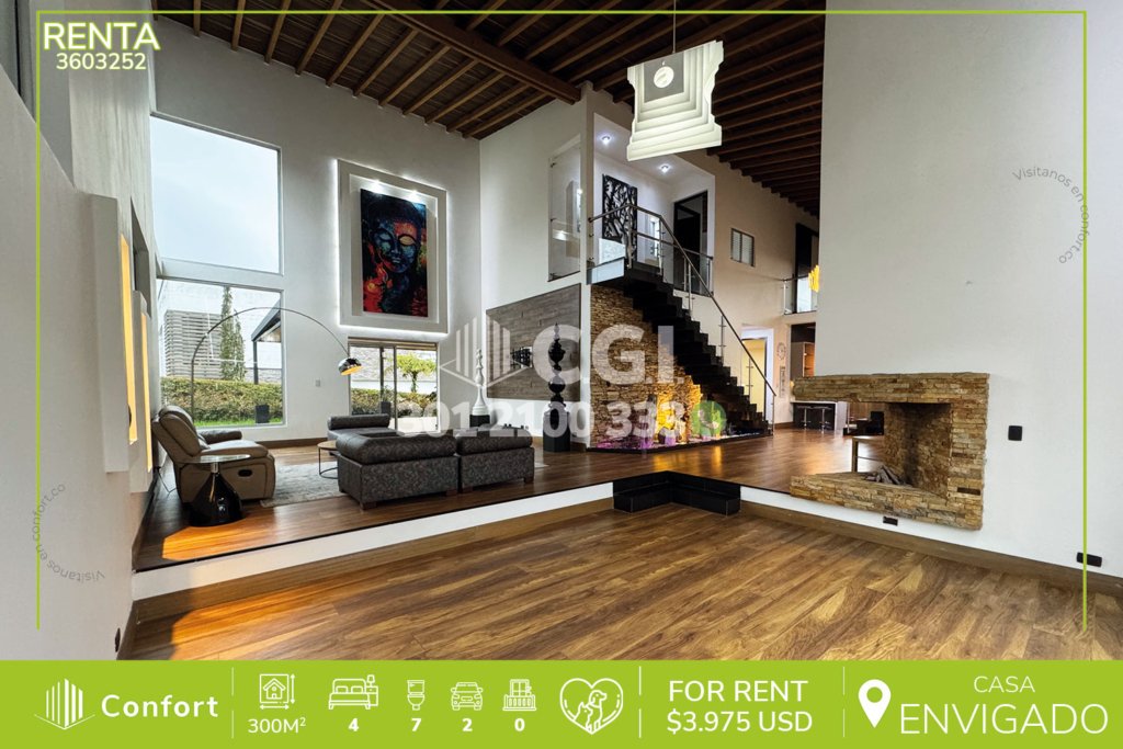 36-03-252 Inmobiliaria en Medellín arrienda casa ubicada en el sector de El Escobero en Envigado, cuenta con un área de 300mts2 distribuidos en sala con chimenea, comedor independiente, cocina integral moderna, zona de ropas, habitación de servicio con baño privado, 2 terrazas, una de ellas en deck con baño privado y la otra con acceso a zona BBQ, gimnasio, turco con baño privado y zona infantil, 4...