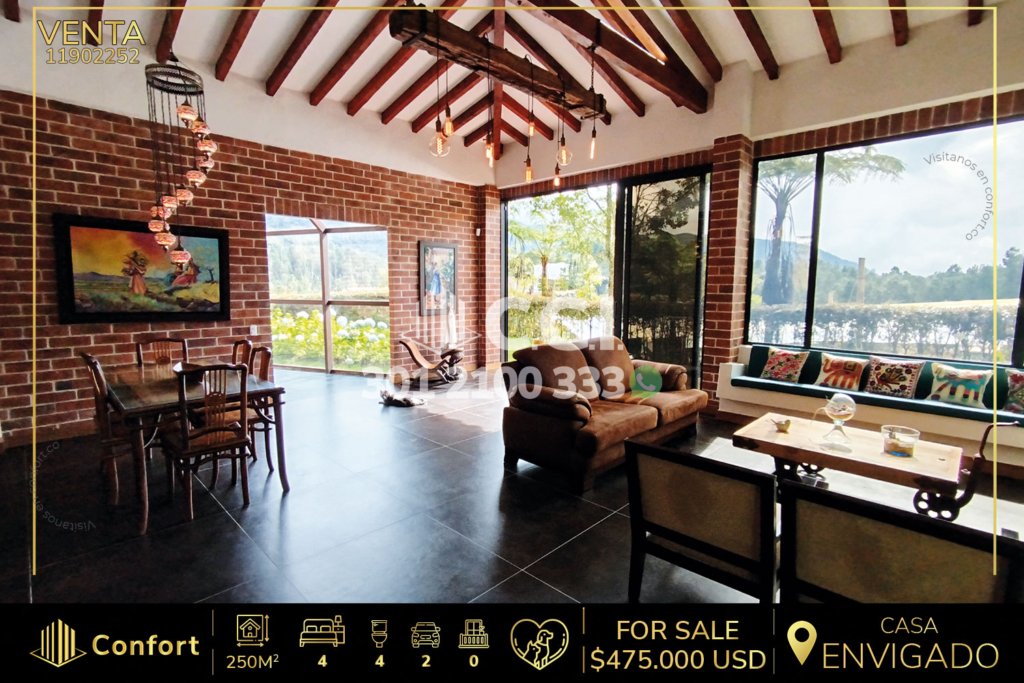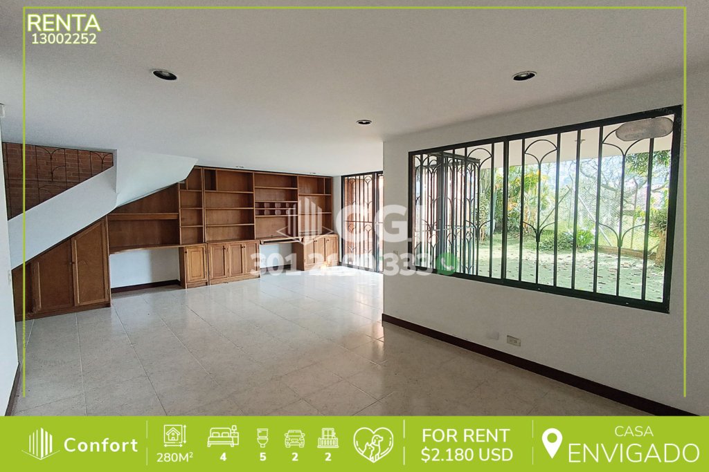 130-02-252 Inmobiliaria en Medellín arrienda casa de tres nieves ubicada en excelente sector de Las Brujas en Envigado, cuenta con un área de 280mt2 distribuidos en sala comedor espaciosa con chimenea y balcón, amplia cocina integral, zona de ropas, habitación de servicio con baño privado, 4 habitaciones de excelente tamaño, la habitación principal y una de la habitaciones auxiliares cuentan con...