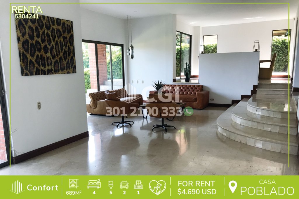 53-04-241 Inmobiliaria en Medellín arrienda casa ubicada en el exclusivo sector de Los Balsos en El Poblado, cuenta con un área de 689mt2 distribuidos en 2 niveles, donde encontramos 2 salas de buen tamaño, comedor, terraza con jacuzzi, cocina integral con excelente iluminación y los más hermosos acabados, patio, zona de ropas, habitación de servicio con baño, 4 habitaciones, cada una con baño...