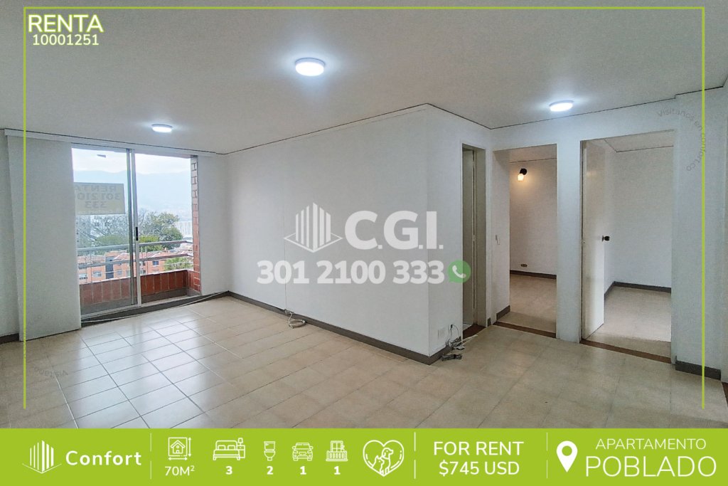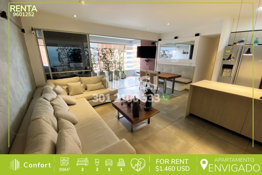 108-01-252 Inmobiliaria en Medellín arrienda apartamento ubicado en excelente sector de El Esmeraldal, cuenta con un área de 73mt2 distribuidos en sala comedor espaciosa, cocina integral, zona de ropas, 2 habitaciones de excelente tamaño, la habitación principal cuenta con vestier y baño privado, adicional podemos encontrar clóset de linos, baño social, balcón con agradable vista, parqueadero y...