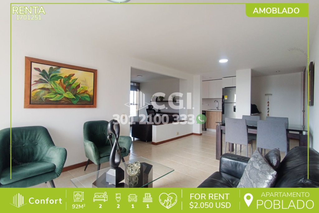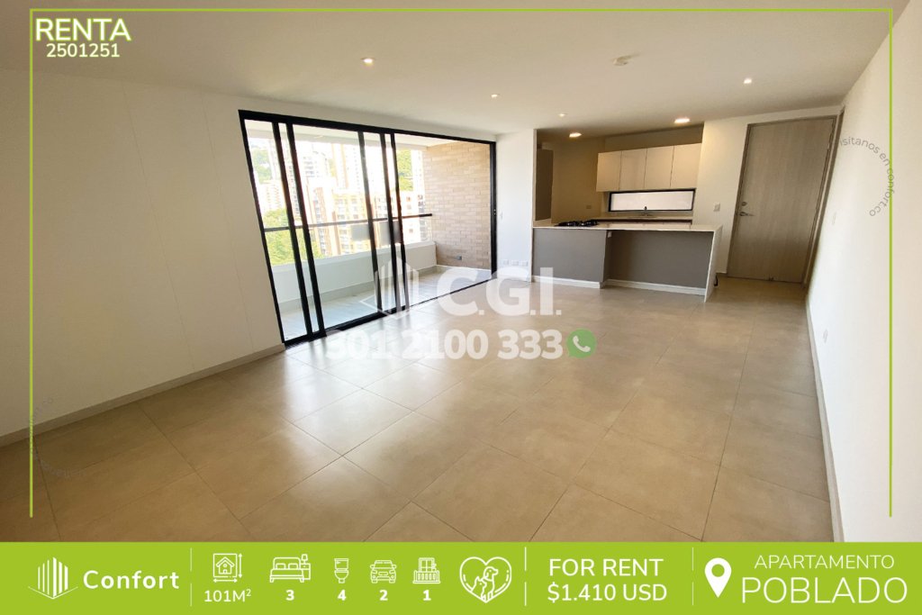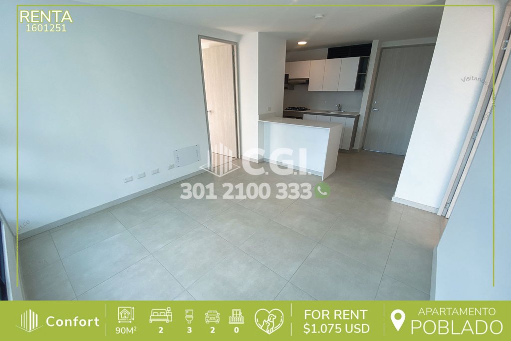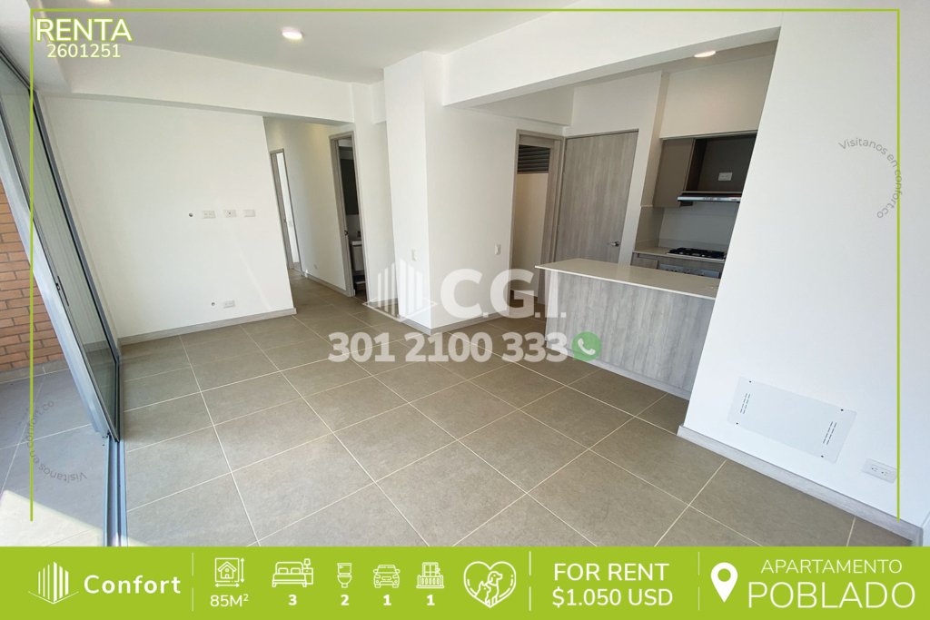 26-01-251 Inmobiliaria en Medellín arrienda apartamento ubicado en el sector de Ciudad del Río en El Poblado, cuenta con un área de 85mt2 distribuidos en sala comedor, balcón, zona de ropas, cocina integral con barra americana, 3 habitaciones con clóset, la habitación principal que cuenta con vestier y baño privado, además, cuenta con baño social, parqueadero y cuarto útil. Ubicado en edificio...