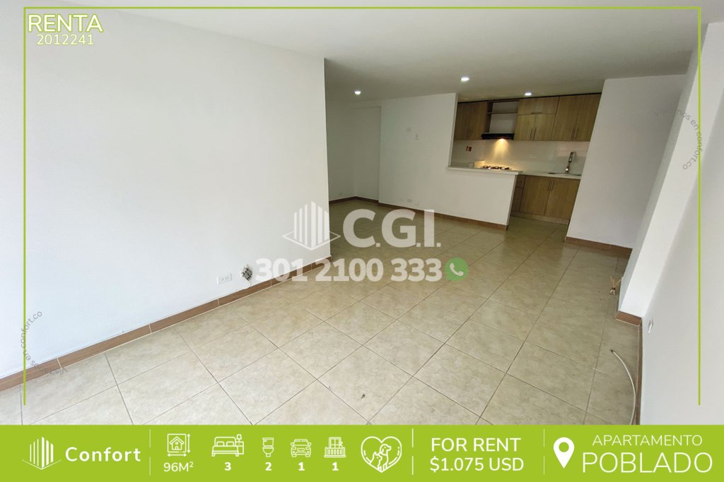 20-12-241 Inmobiliaria en Medellín arrienda apartamento ubicado en el sector de Patio Bonito en El Poblado, cuenta con un área de 96 mts2 distribuidos en sala comedor amplia, cocina integral, patio con zona de ropas, balcón, 3 habitaciones, una de ellas con terraza y baño privado, baño social, parqueadero y cuarto útil. Ubicado en unidad con seguridad privada 24/7 y zonas comunes tales como piscina,...