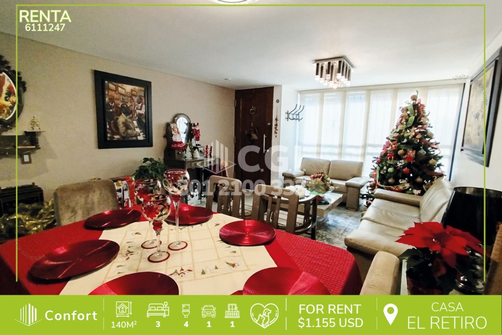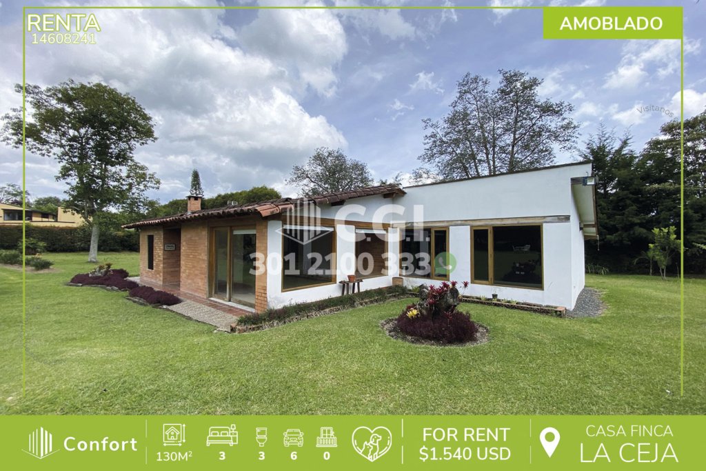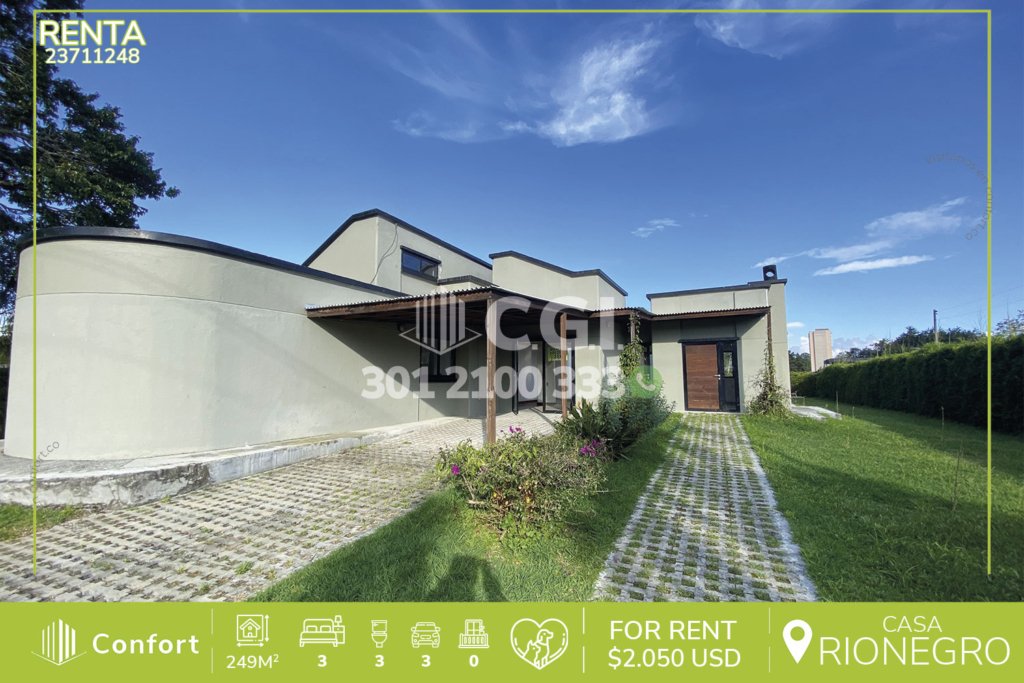61-11-247 Casa disponible para la renta en El Retiro, Antioquia., cuenta con un área de 140 mts2 distribuidos en sala comedor amplia, cocina semi integral, zona de ropas, 3 habitaciones con clóset, 2 de ellas con baño privado, una con bañera y balcón, además, cuenta con garaje y cuarto útil. Ubicada en unidad donde a su alrededor podemos encontrar Puro Cuero y el barrio Pinares, con vías de acceso...