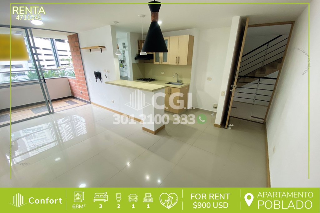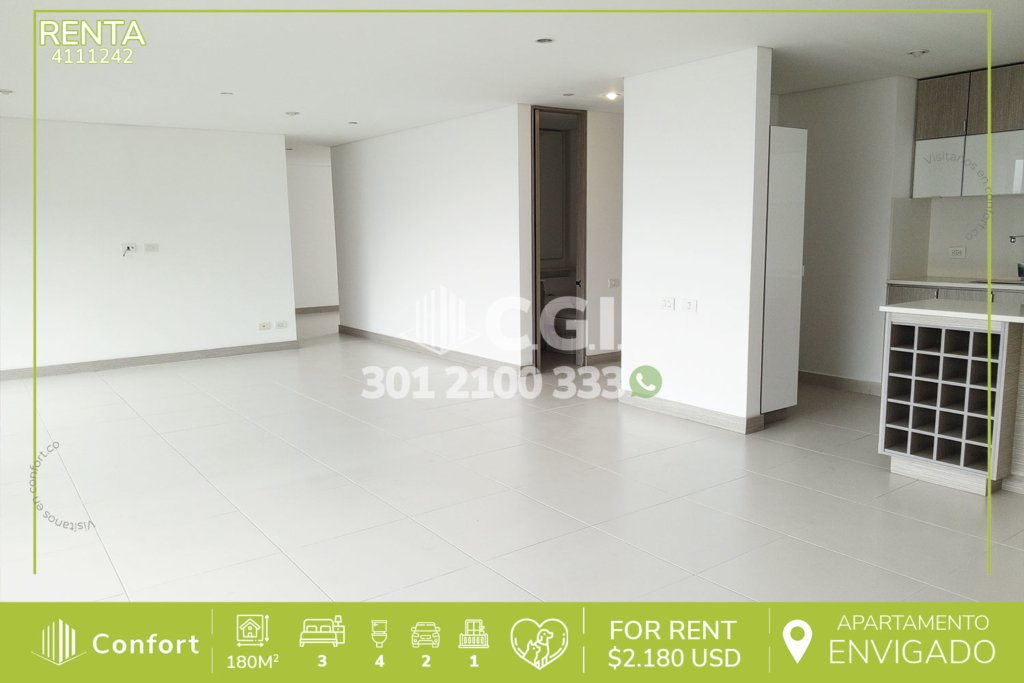 44-11-242 Inmobiliaria en Medellín arrienda apartamento ubicado en el sector de Chingui - Envigado, cuenta con un área de 70 mts2 distribuidos en sala comedor, cocina semi-integral, balcón, zona de ropas,3 habitaciones, una de ellas con baño privado y closet, las otras 2 con closet, baño social, parqueadero y cuarto útil. Ubicado en unidad cerrada que cuenta con seguridad privada 24/7 y zonas comunes...