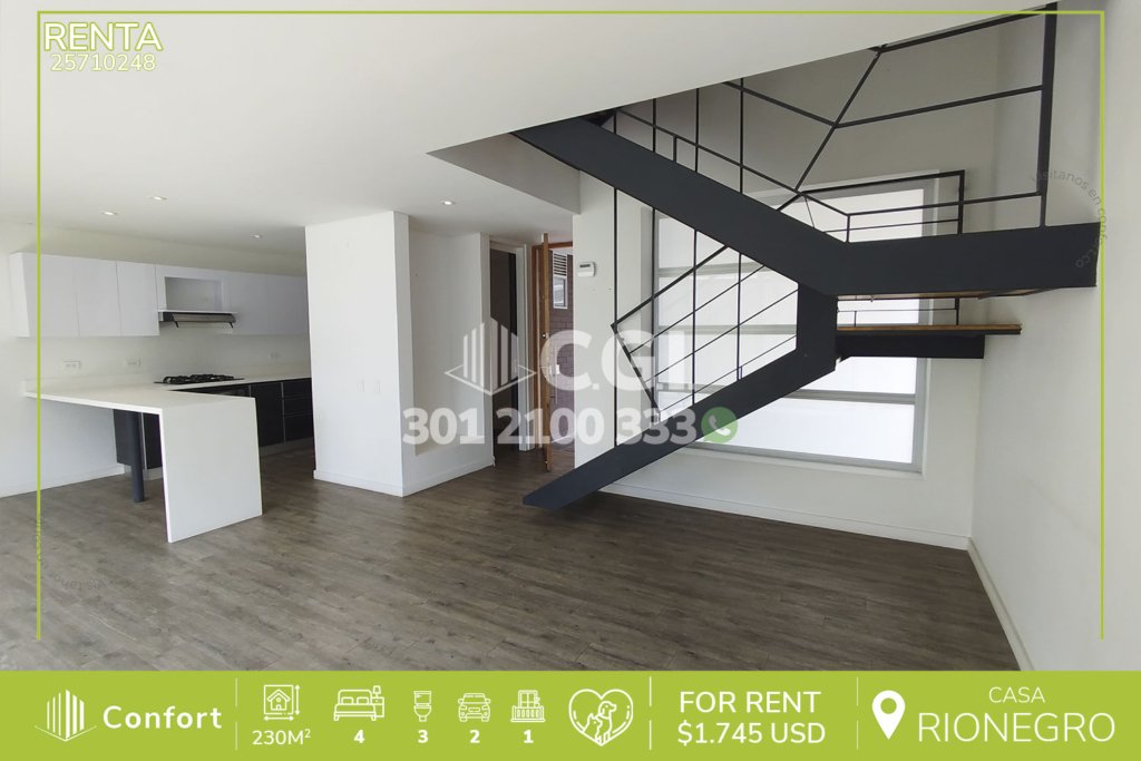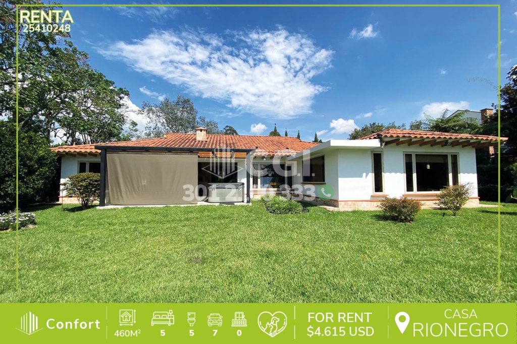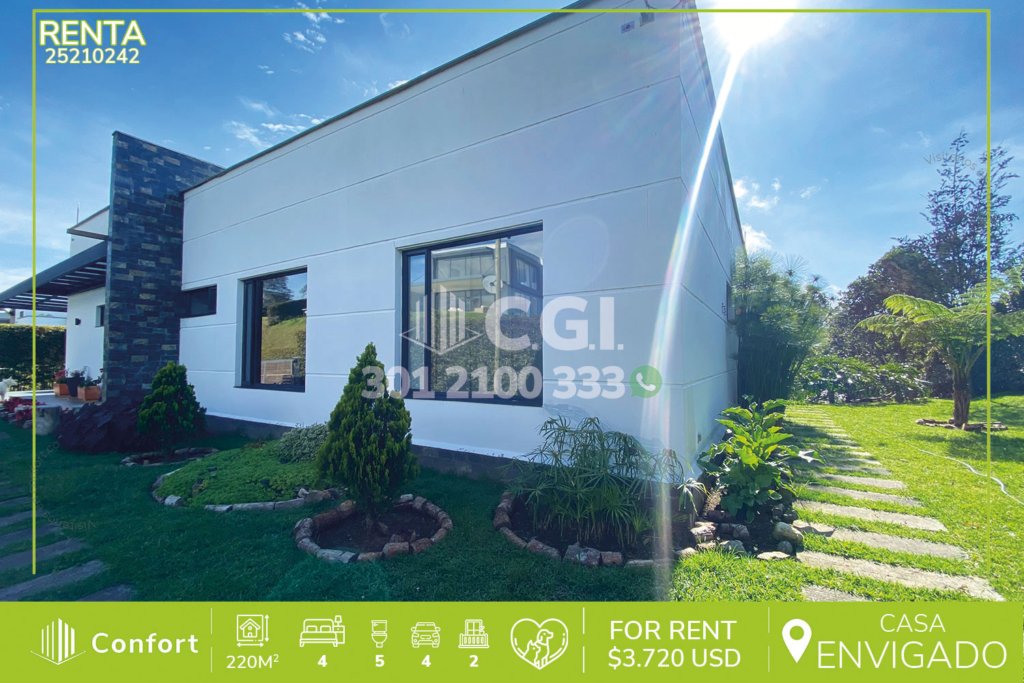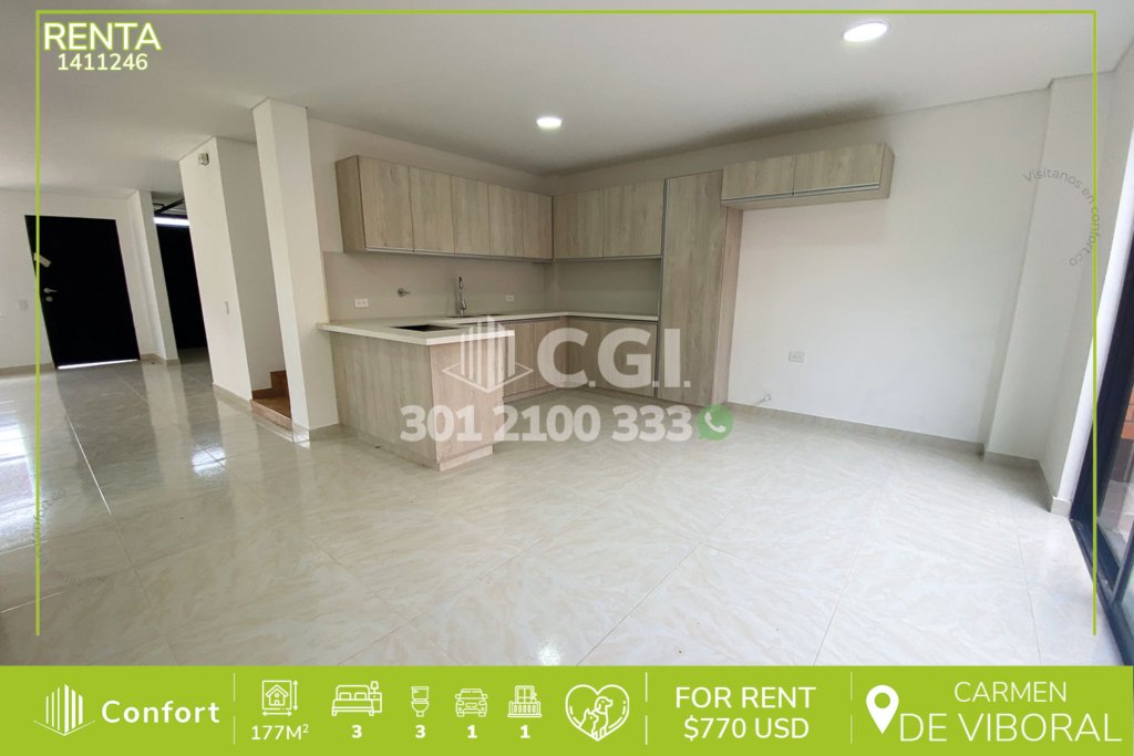 14-11-246 Hermosa casa disponible para la renta en El Carmen de Viboral en Antioquia., cuenta con un área de 177 m² distribuidos en sala amplia que conecta con el comedor, cocina sencilla, balcón que ofrece excelente ventilación e iluminación, patio, zona de ropas, 3 habitaciones, 2 de ellas con clóset y la habitación principal con vestier y baño privado, además, incluye 2 baños sociales, garaje...