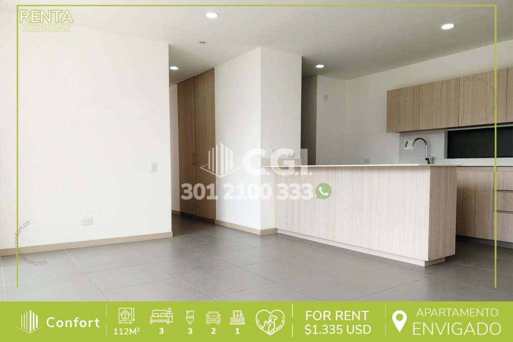 102-10-242 Inmobiliaria en Medellín arrienda apartamento ubicado en tranquilo sector de La Loma del Escobero en Envigado, cuenta con 112mt2 distribuidos en sala comedor de muy buen espacio, cocina integral con barra americana, balcón con vista panorámica, zona de ropas, 3 habitaciones, una de ellas con vestier y baño privado, las otras 2 con clóset, 2 baños sociales, 2 parqueaderos y cuarto útil....