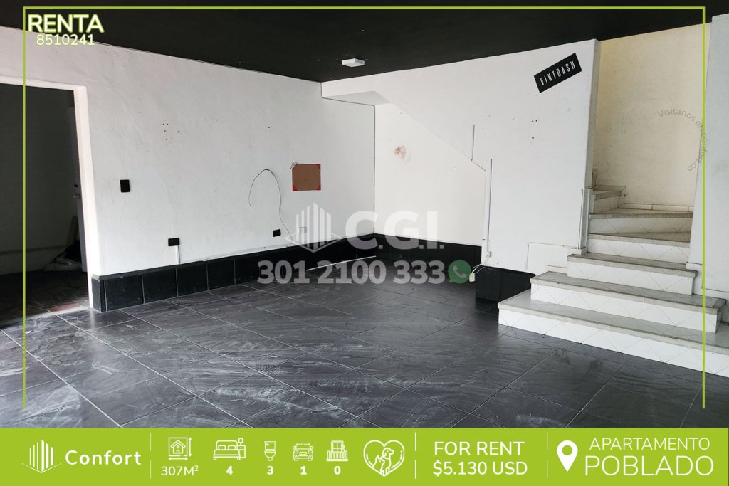 85-10-241 Inmobiliaria en Medellín arrienda casa comercial ubicada en Alejandría en el sector del poblado, con un área de 307mt2 distribuidos en cocineta, sala comedor, 4 habitaciones,2 de ellos con baño privado,2 baños social,2 closet, jardín interno, en el primer piso un gran espacio para local, en el segundo piso una gran espacio sala comedor y corredor, espacio para dos parqueaderos. A su...