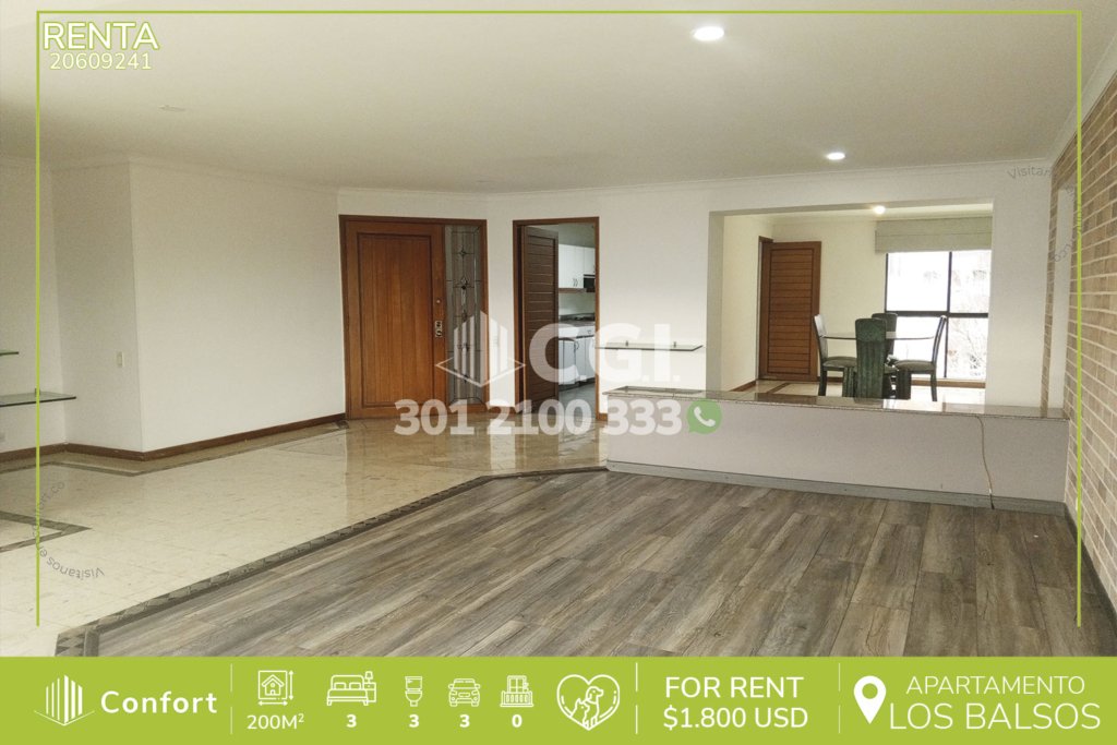 206-09-241 Inmobiliaria en Medellín vende apartamento ubicado en tranquilo sector de La Loma de los Balsos en El Poblado, cuenta con 200mt2 distribuidos en sala comedor de muy buen espacio, comedor, cocina semi integral, zona de ropas, 3 habitaciones con clóset, 2 de ellas con baño privado y una de ellas con bañera y vestier, baño social, habitación de servicio con su respectivo baño, biblioteca, 3...