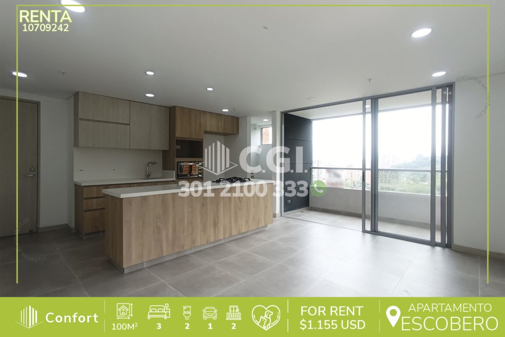 113-09-242 Inmobiliaria en Medellín arrienda apartamento ubicado en el sector de la Abadía en Envigado, cuenta con un área aproximada de 73mt2 distribuidos en sala comedor, cocina integral moderna, zona de ropas, 2 habitaciones de excelente tamaño, la habitación principal cuenta con vestier y baño privado, adicional podemos encontrar 1 baño social y amplio balcón con vista a la zona residencial,...