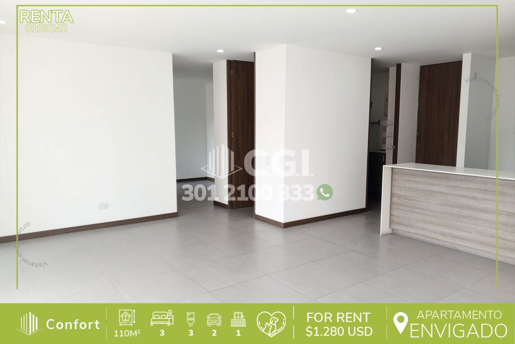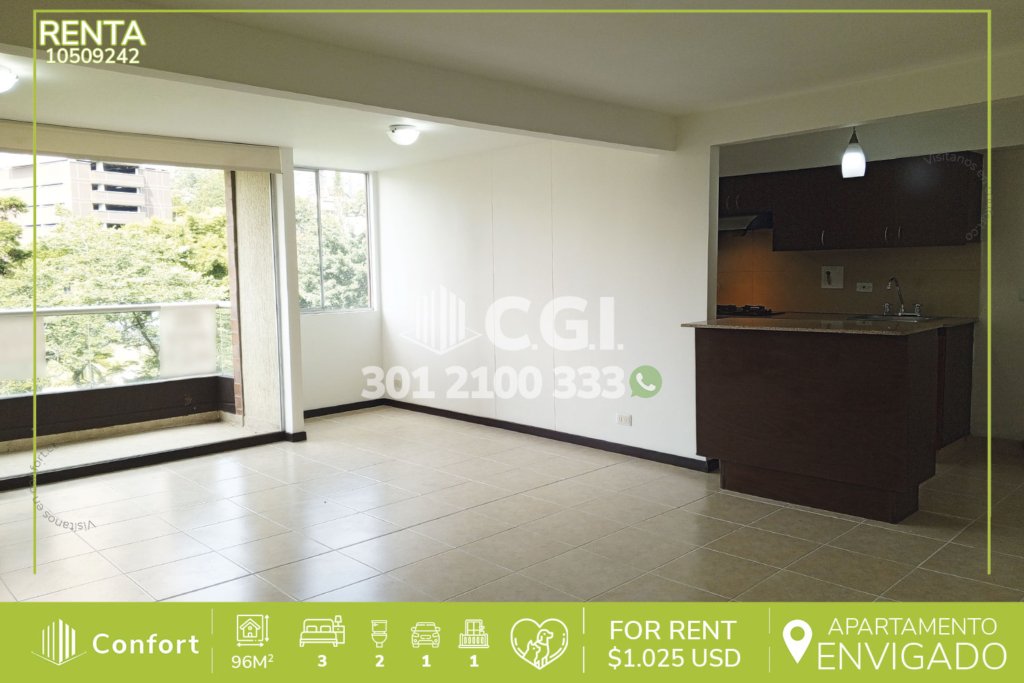105-09-242 Inmobiliaria en Medellín arrienda apartamento ubicado en tranquilo sector Cumbres en Envigado, cuenta con 96mt2 distribuidos en sala comedor de muy buen espacio, cocina integral con barra americana, balcón con vista panorámica, zona de ropas, 3 habitaciones, una de ellas con vestier y baño privado y las otras 2 con clóset, baño social, sala de estudio, parqueadero y cuarto útil. Ubicado...