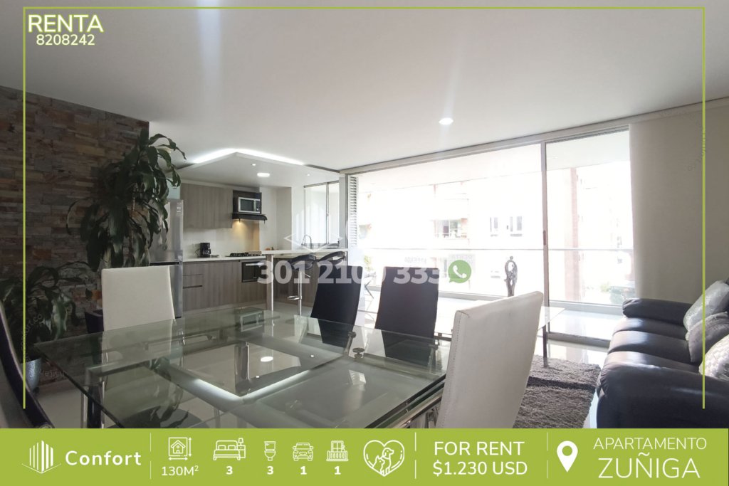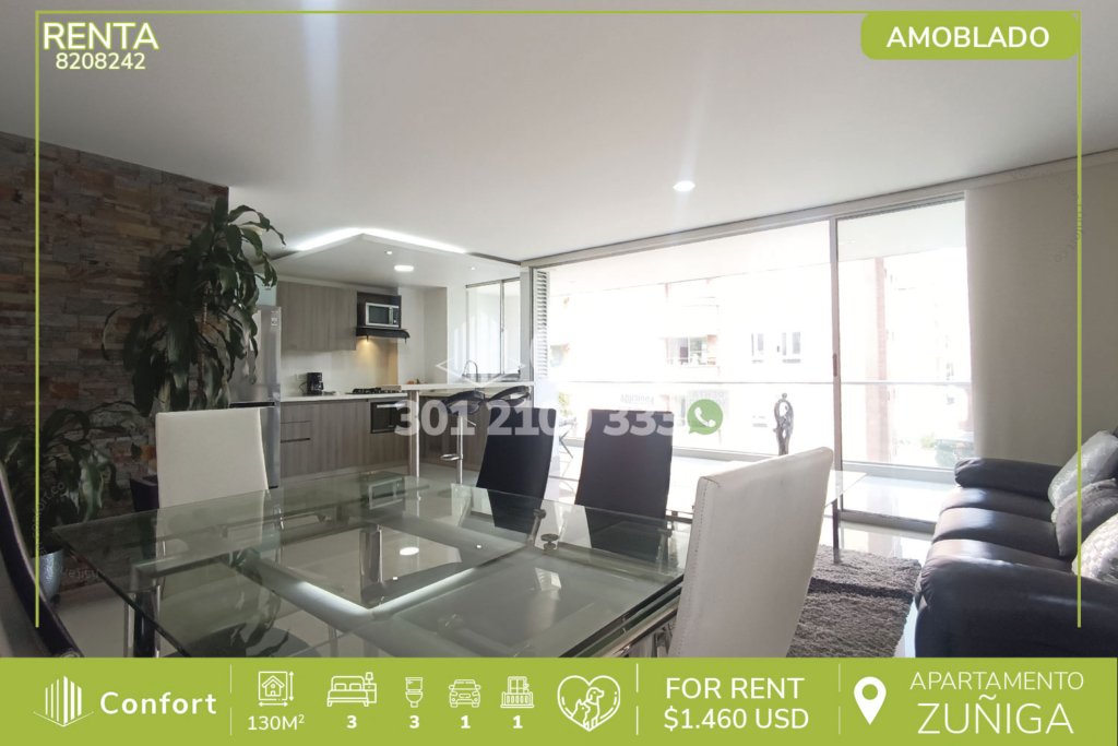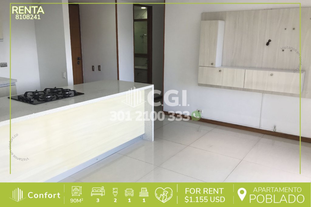 126-06-241 Inmobiliaria en Medellín arrienda hermoso y moderno apartamento ubicado en tranquilo sector del Altos del Poblado el cual cuenta con 87mt2 distribuidos en sala comedor muy iluminada, balcón con una vista panorámica, cocina integral con barra americana, excelente iluminación y los más hermosos acabados, zona de ropas, 2 habitaciones, una de ellas con baño privado y vestier, clóset, baño...