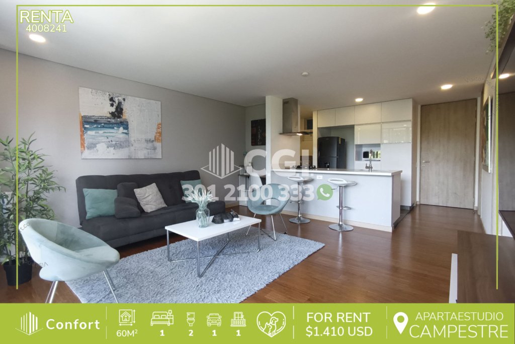 40-08-241 Inmobiliaria en Medellín arrienda moderno apartaestudio en el sector de Campestre en El Poblado, el cual cuenta con un área de 60mt2 distribuida en sala comedor espaciosa e iluminada, cocina integral moderna, zona de ropas, 1 habitación de excelente tamaño con su respectivo vestier y baño privado, adicional podemos encontrar un baño social, amplio balcón con vista panorámica, parqueadero...