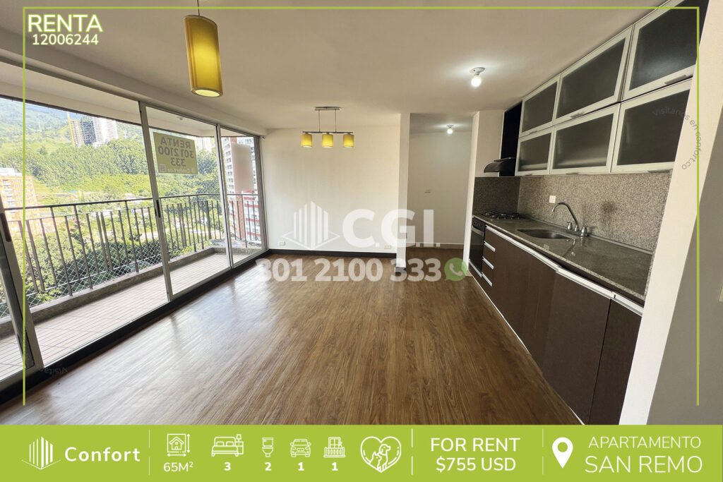 120-06-244 Apartamento con grandiosa vista al sector de San Remo en Sabaneta, en sus 65 metros construidos encontrarás: 3 habitaciones, 2 de ellas con clóset y la principal con vestier y baño privado, baño social, sala comedor, cocina integral, zona de ropa y un amplio balcón, el apartamento cuenta con una grandiosa iluminación y ventilación. Está ubicado en unidad cerrada y cuenta con una de las...
