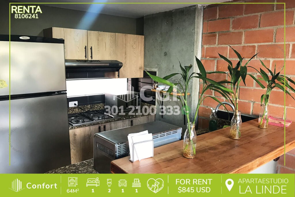 81-06-241 Apartaestudio dúplex disponible para la renta ubicado en tranquilo sector de La Linde en El Poblado, cuenta con 64mt2 distribuidos en sala comedor, cocina semi integral con barra americana, zona de ropas, baño social, balcón, habitación de buen tamaño con su respectivo baño privado y vestier, parqueadero, cuarto útil y vigilancia 24/7. A su alrededor podemos encontrar el parque Lleras,...