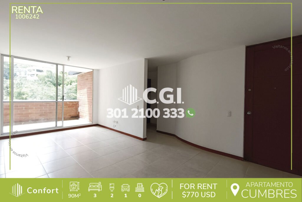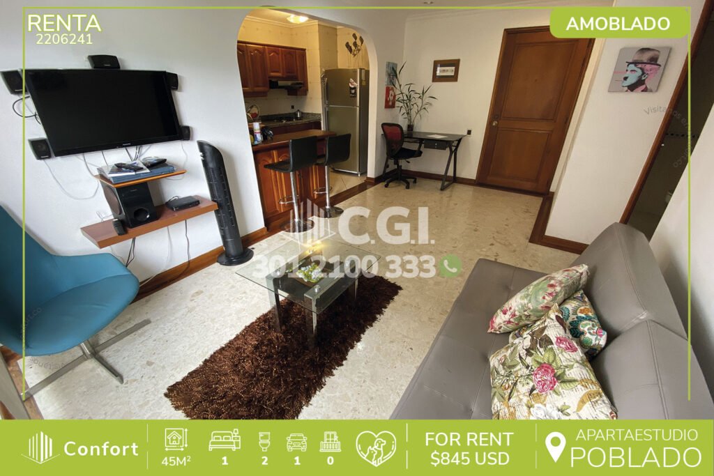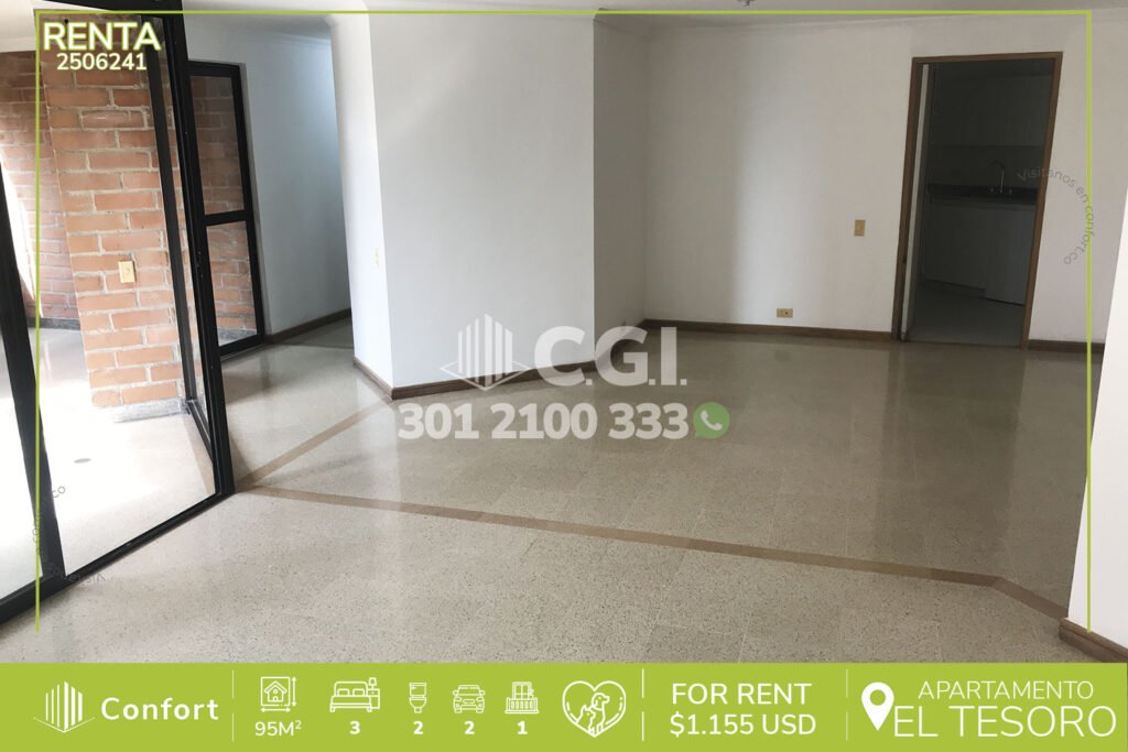 25-06-241 Moderno apartamento disponible para la renta ubicado en tranquilo sector de El Tesoro en El Poblado, cuenta con 95mt2 distribuidos en sala comedor con muy buen espacio, cocina integral, zona de ropas, sala de estudio, 3 habitaciones una de ellas con vestier y baño privado, las otras 2 habitaciones con closet,baño social, habitación de servicio con su respectivo baño, 2 parqueaderos y cuarto...