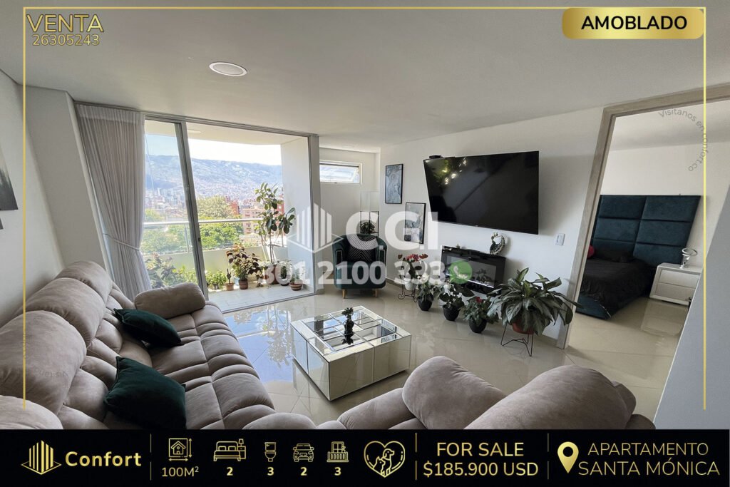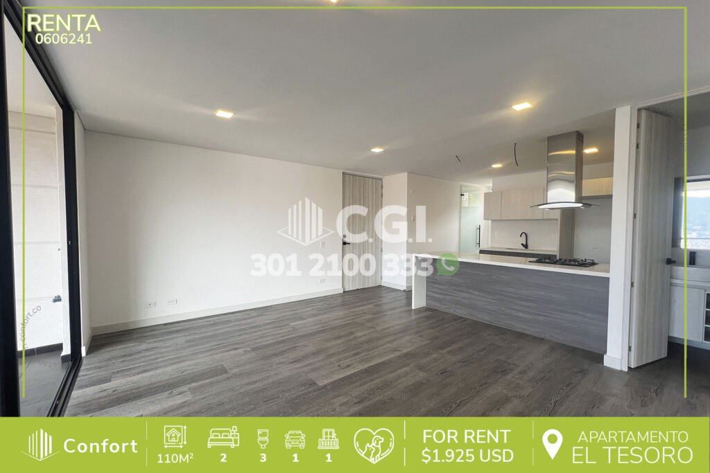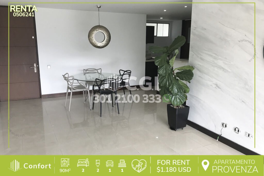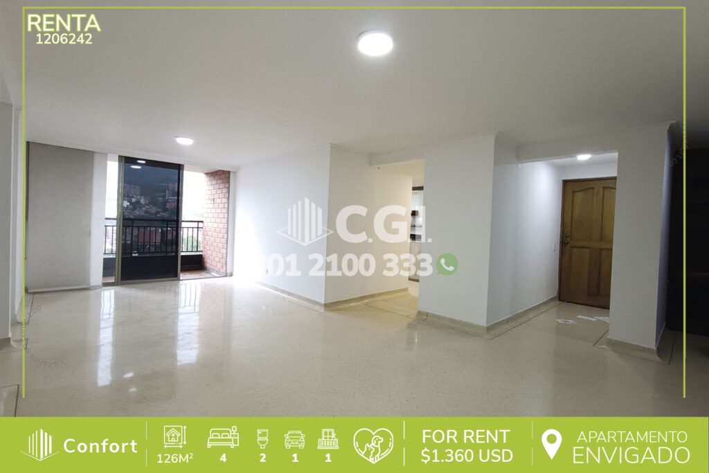14-06-242 Hermoso y cómodo apartamento disponible para la renta en exclusivo sector de Envigado, cuenta con 116 mts2 distribuidos en 2 alcobas, la principal con su baño privado, alcoba de servicios, baño social, cocina integral con barra americana, balcón con ventanal, sala-comedor amplia y los más hermosos acabados, con seguridad privada 24/7 y zonas comunes como, gimnasio, salón social, sauna, y...