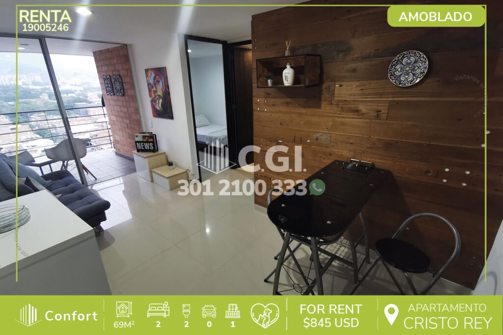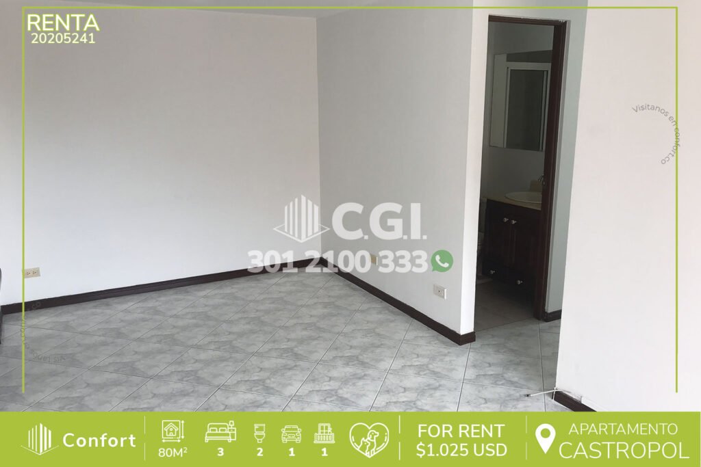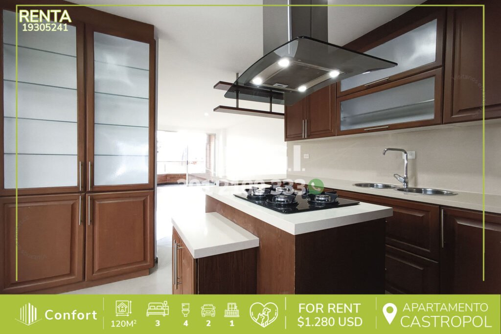 202-05-241 Apartamento disponible para la renta ubicado en tranquilo sector de Castropol en El Poblado, cuenta con 80mt2 distribuidos en sala comedor, balcón con vista panorámica, cocina semi integral, barra americana, zona de ropas, 3 habitaciones una de ellas con baño privado, 2 closet, baño social, parqueadero y cuarto útil, cuenta con vigilancia 24/7 y tiene zonas comunes como piscina para niños...