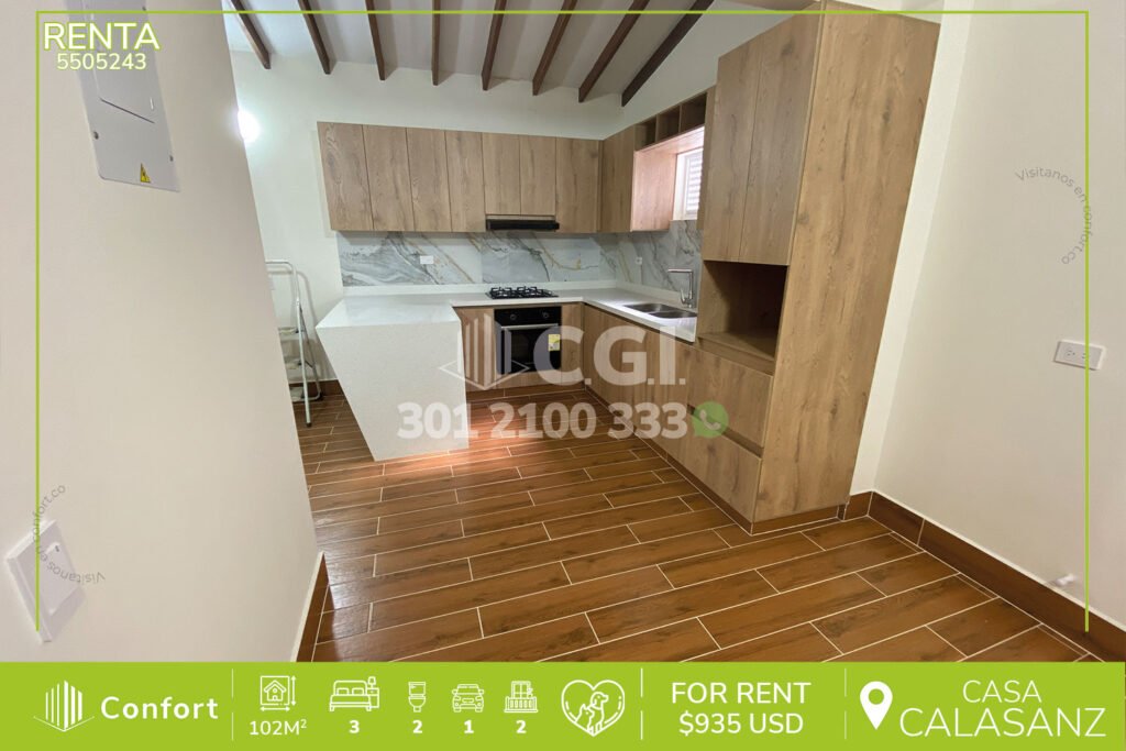 55-05-243 Hermosa y moderna casa disponible para la renta ubicada en el sector de Calasanz parte baja, cuenta con un área de 102m² distribuidos en cocina integral, 3 habitaciones, 2 baños, zona de ropas, sala comedor, parqueadero, 2 balcones, sala de estudio, cuarto útil, se encuentra en tranquilo sector, a su alrededor podemos encontrar estación Floresta del Metro, mercados Madrid, con vías de...