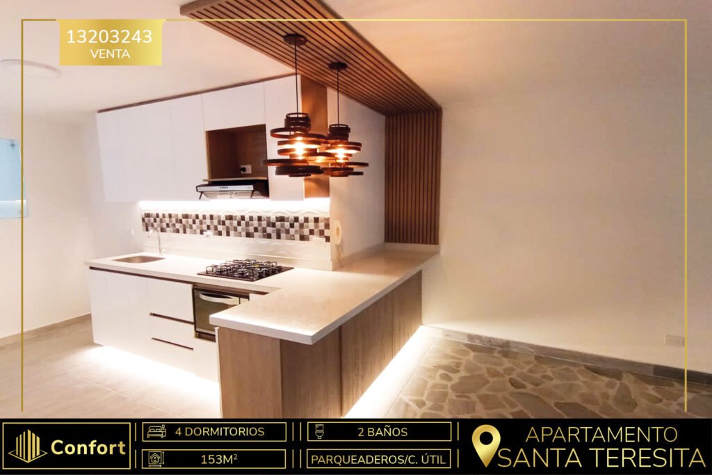 132-03-243 Espectacular apartamento ubicado en el barrio Santa Teresita, cerca a los dos parques de Laureles, Unicentro, Viva Laureles, universidades y la 80. El apartamento recién remodelado cuenta con un área de 153mts2, donde encontramos 4 habitaciones, la principal con baño y vestier, habitación de servicio con baño, baño social, cocina integral abierta, sala comedor, sala de estar, balcón, zona...