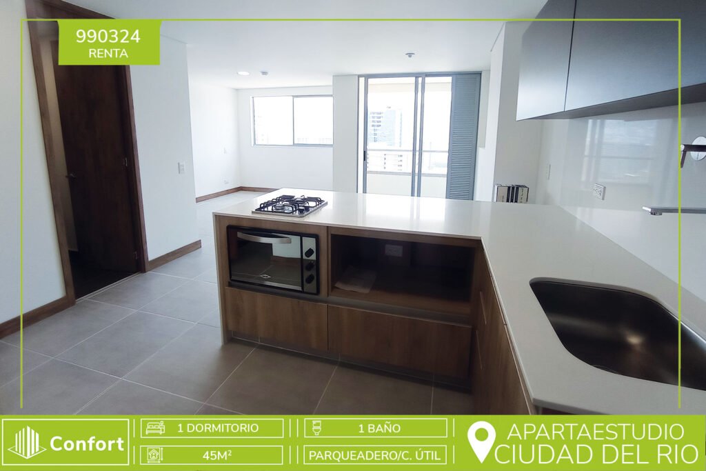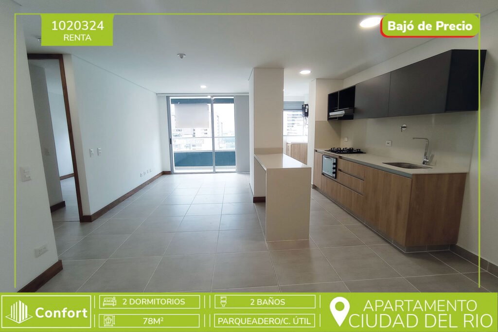 102-03-24 Hermoso Apartamento disponible para la renta en el sector de Ciudad del Río. Cuenta con un área aproximada de 78mt2, distribuidos en sala comedor con ventanal y balcón espacioso, cocina integral con horno, extractor de olores y barra americana, zona de ropas, 1 baño social, 2 habitaciones, la principal cuenta con vestier y baño privado, cuarto útil y parqueadero privado. Ubicado en unidad...