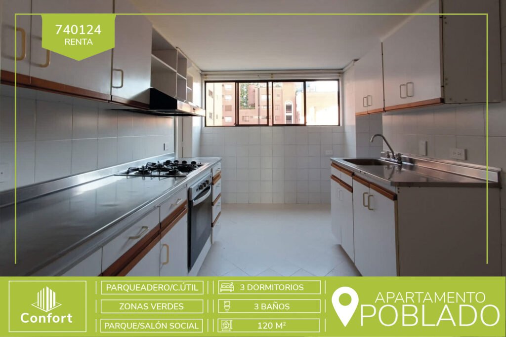 74-01-24 Hermoso apartamento disponible para la renta ubicada en el exclusivo sector de los Balsos II en el Poblado, cuenta con 120mt2 distribuidos en una sala de muy buen espacio con balcón cerrado, cuenta con 3 habitaciones, más la habitación de servicio, tiene 1 baño privado,1 baño social y 1 baño de servicio, cocina integral grande, zona de ropas, cada habitación cuenta con su clóset, además...