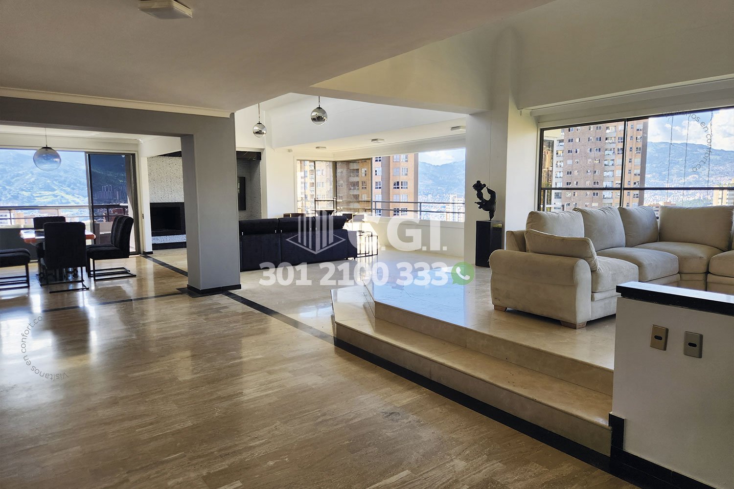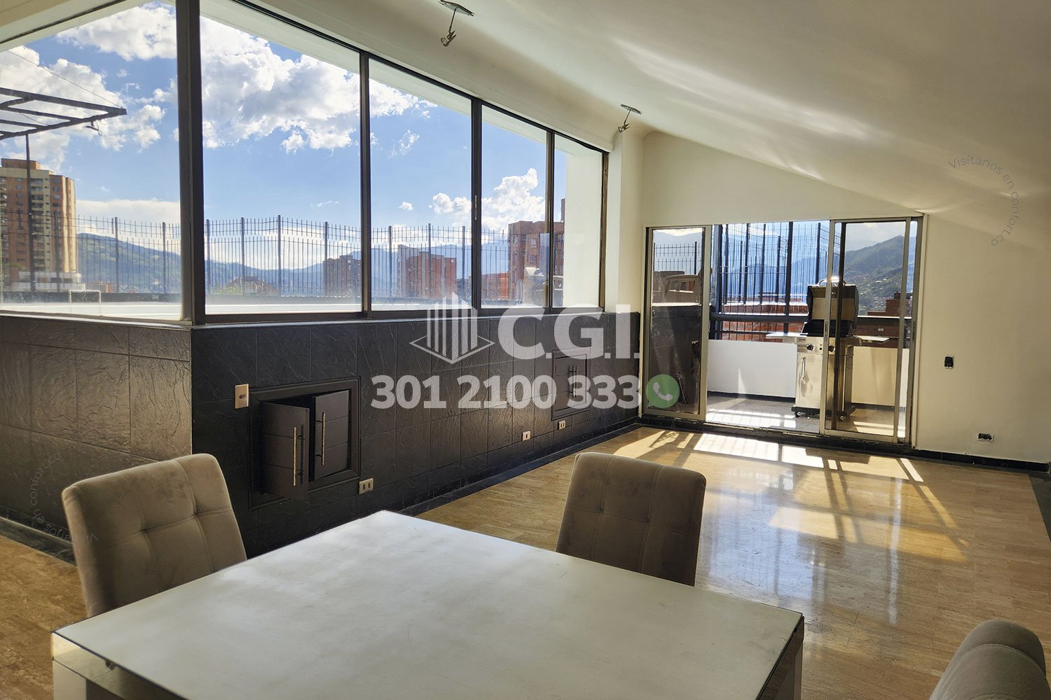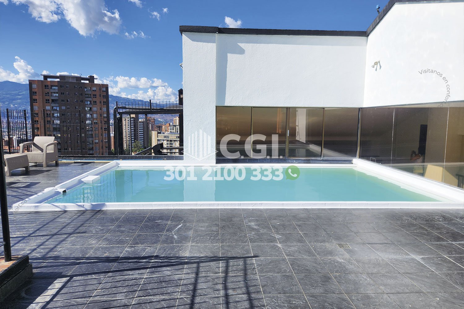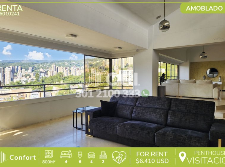 60-10-241 Inmobiliaria en Medellín arrienda penthouse dúplex ubicado en tranquilo sector de La Visitación en El Poblado, cuenta con un área de 800mt2 distribuidos en sala, comedor, cocina integral, sala de estar, 2 balcones, terraza, piscina privada, turco, sauna, zona de ropas, 4 habitaciones con su respectivo baño privado y vestier, 2 baños sociales, habitación de servicio con baño privado, 4 parqueaderos y 2 cuarto útil. Ubicado en unidad con seguridad privada 24/7, zonas verdes y parque infantil, a su alrededor podemos encontrar el parque lineal El Garabato, mall La Inferior y mall La Visitación, con vías de acceso como la transversal inferior, Los González y amplia variedad de rutas de trasporte público. CONFORT GESTORES INMOBILIARIOS – Arriendo en El Poblado